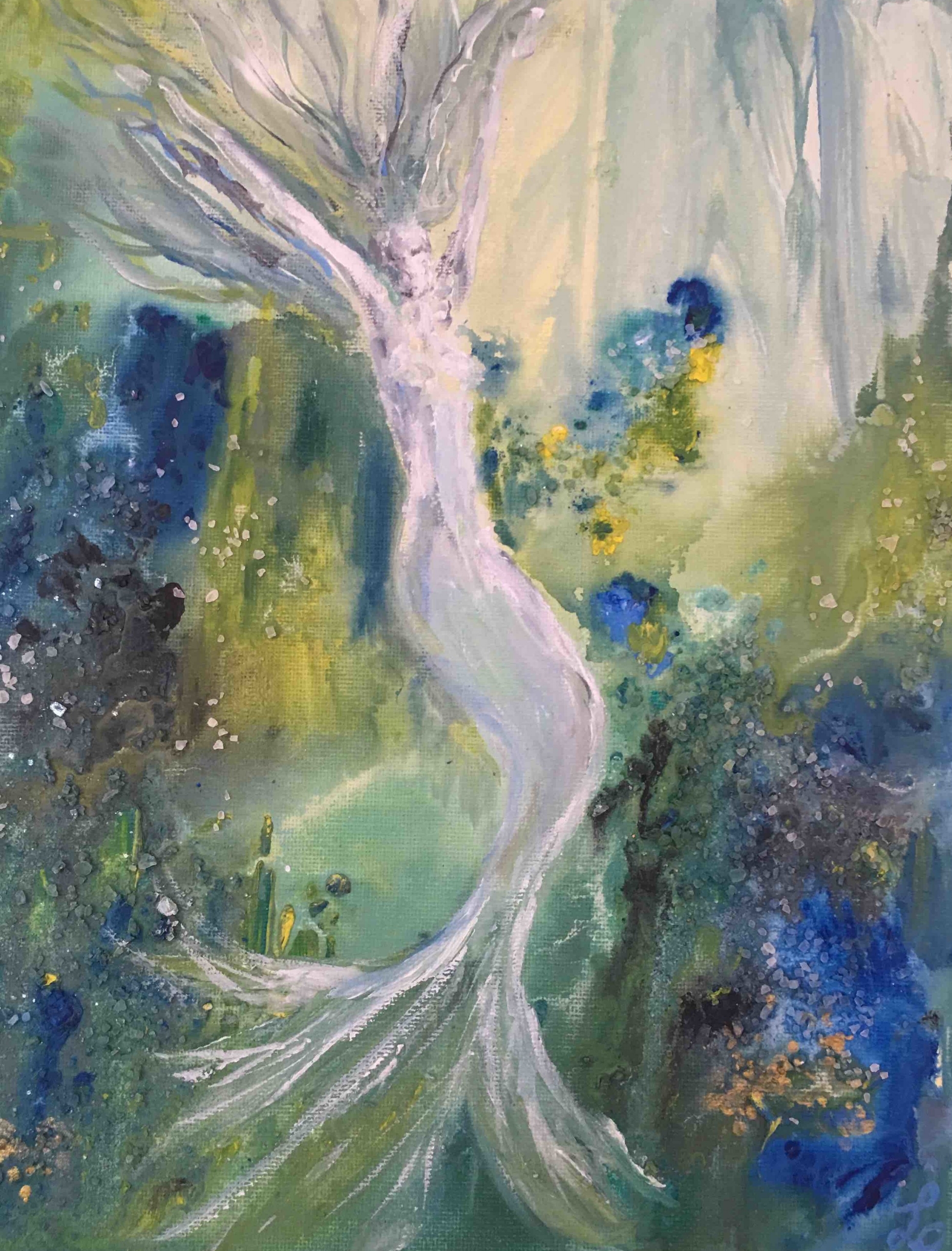 mixed media acrylic, oil and crystal on canvas